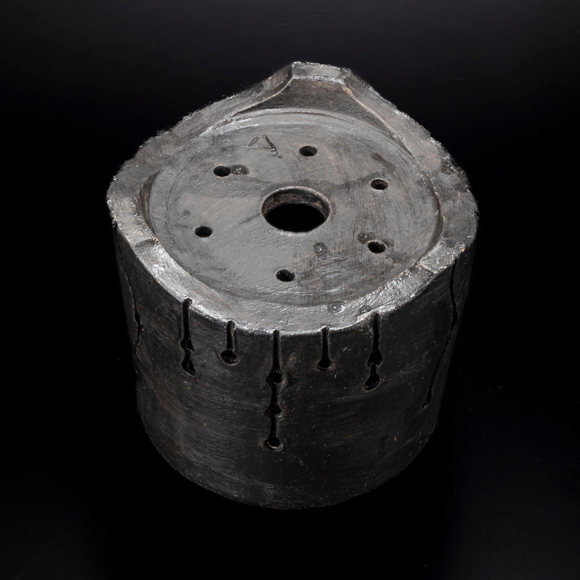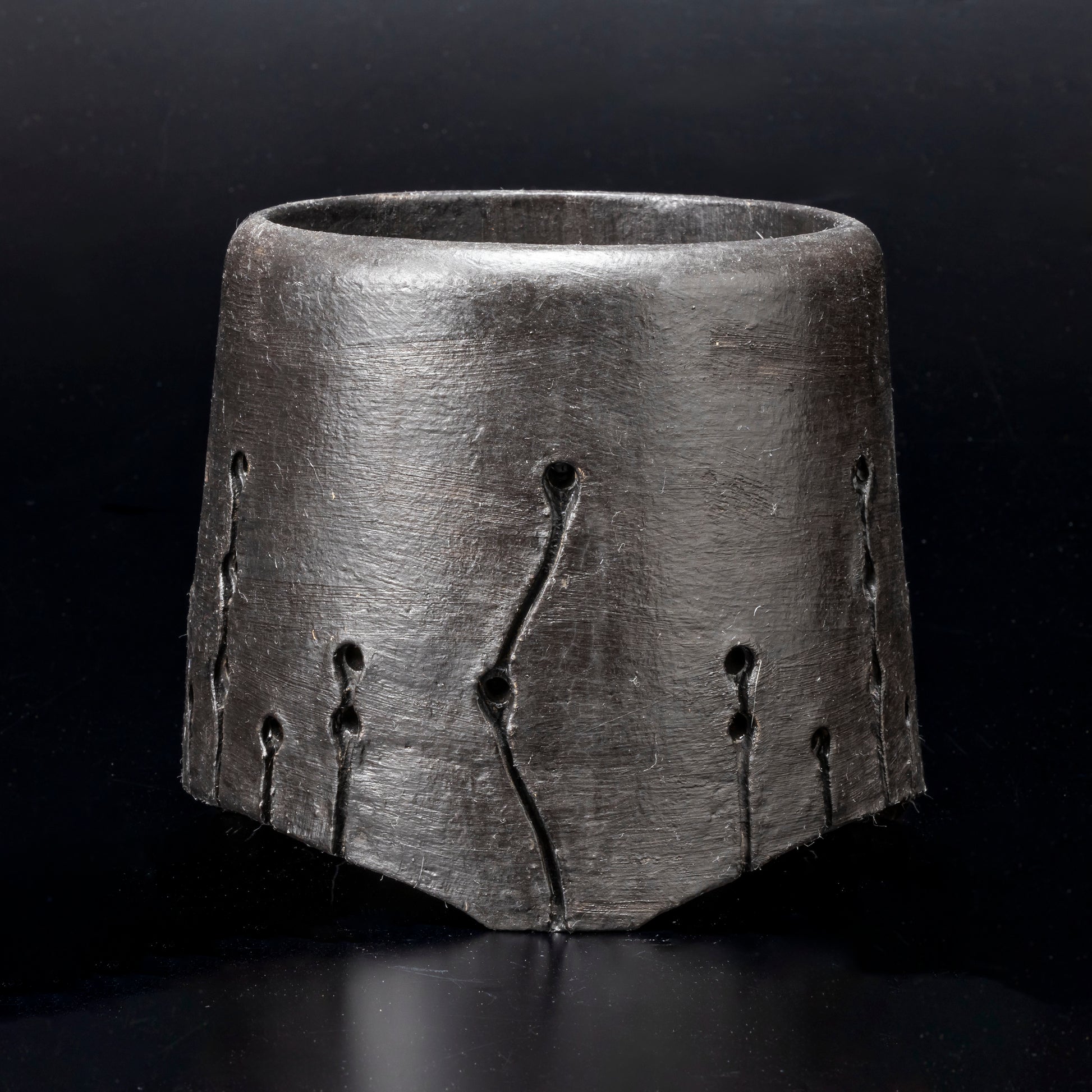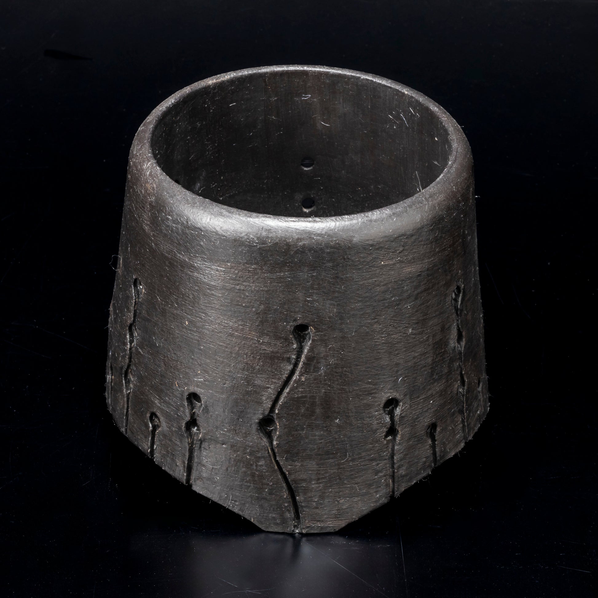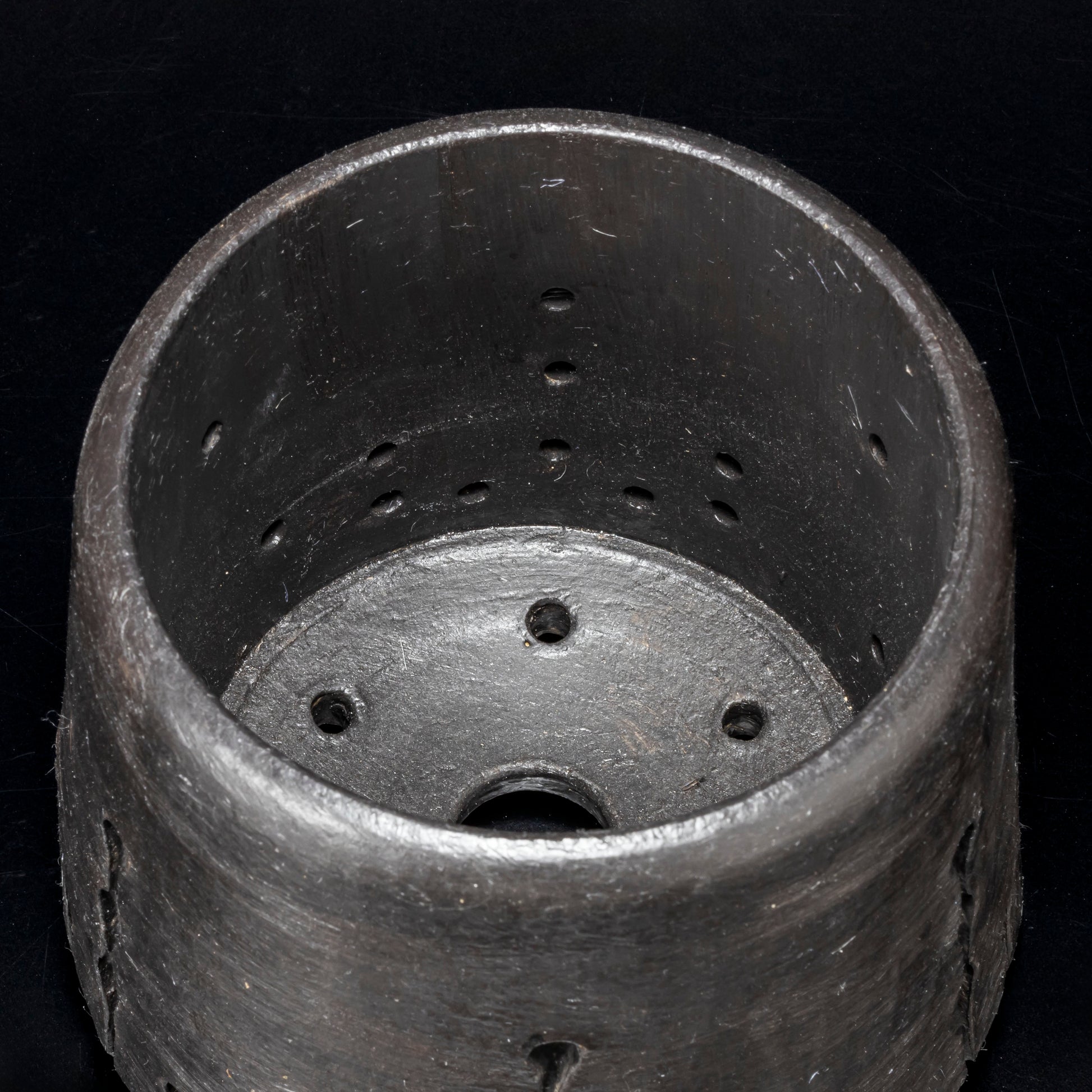 側面に穴をあけ、水みちを通し根腐れのしにくい工夫を施した植木鉢です。安定感のある三点の足は角度を変える事で違う表情が楽しめます。国際特許取得済みの作品です。