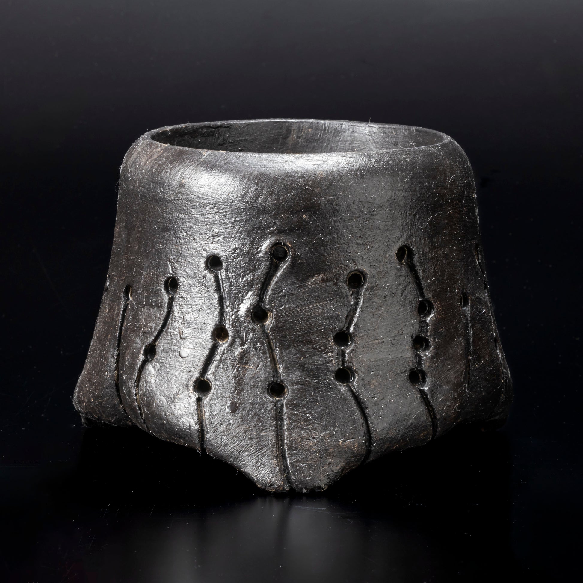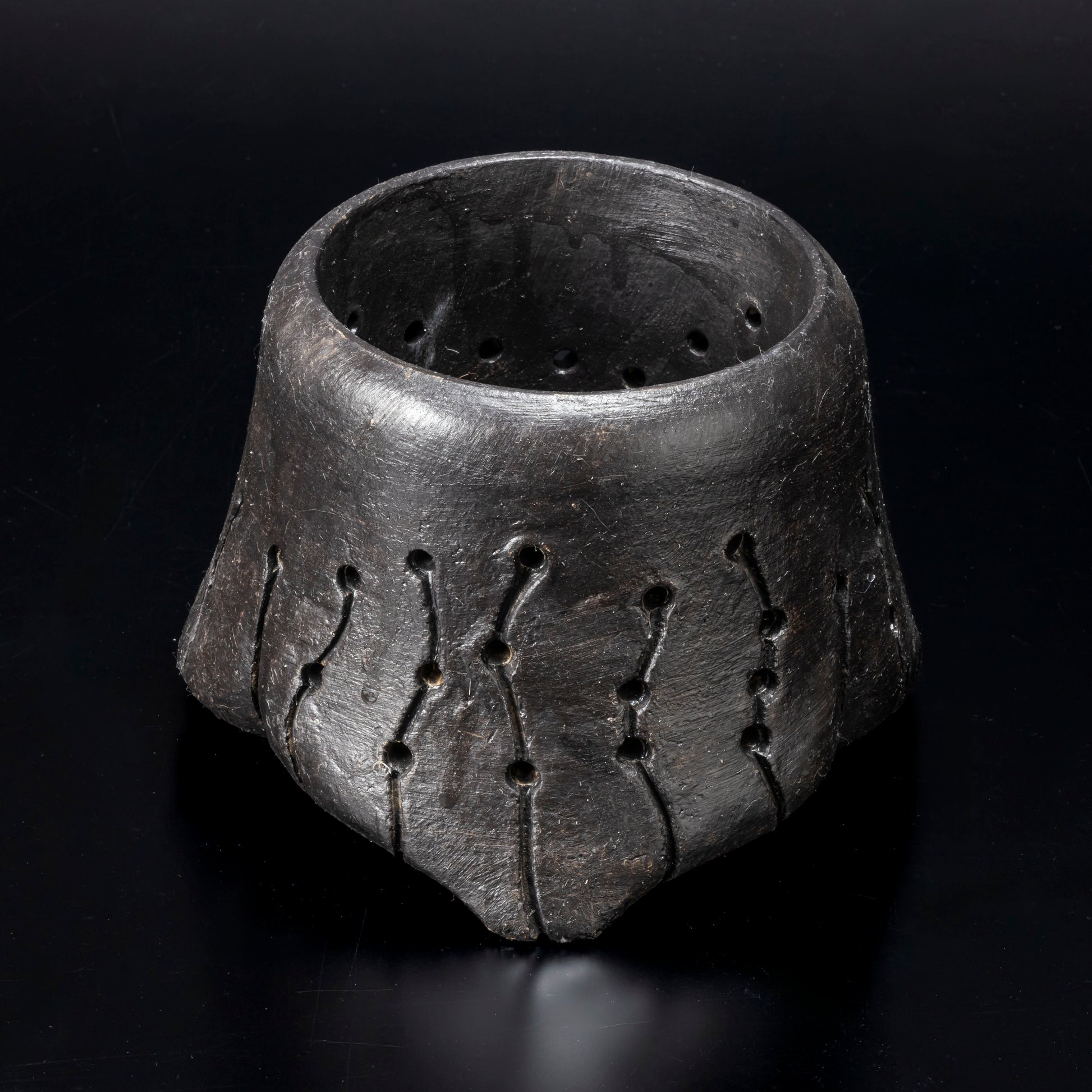 側面に穴をあけ、水みちを通し根腐れのしにくい工夫を施した植木鉢です。安定感のある三点の足は角度を変える事で違う表情が楽しめます。国際特許取得済みの作品です。
