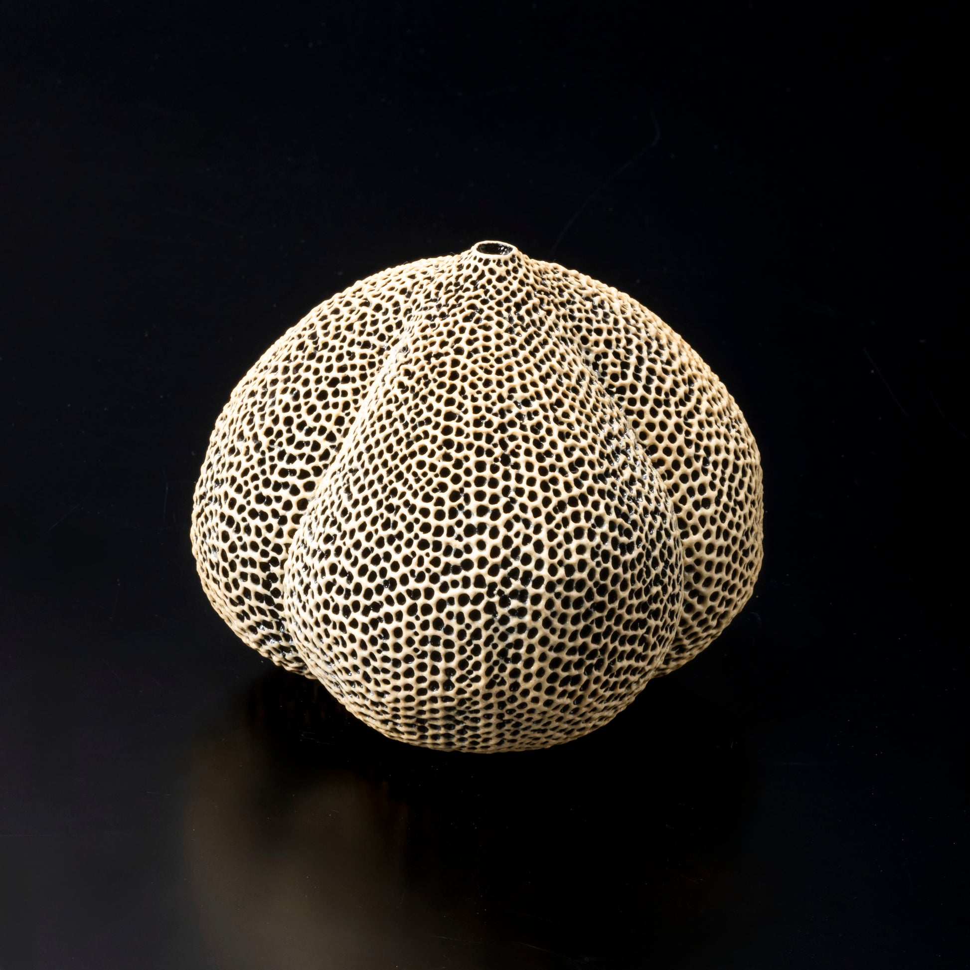 三つの房を合わせた形状の全面に、天刻文を施しています。房はそれぞれ天地人を象徴し、ひいては全宇宙を想像させます。